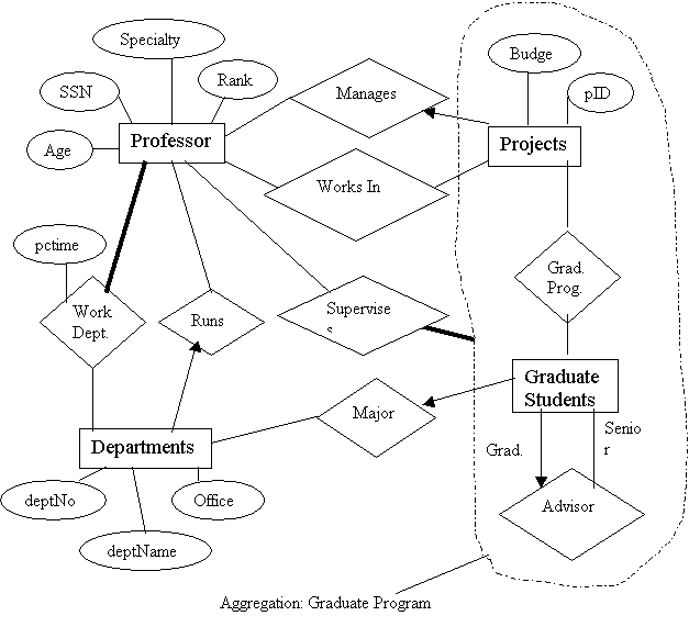 Ø      A professor has a SSN, name, age, rank, research specialty