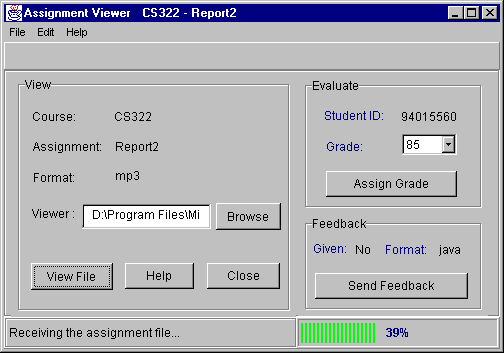 After viewing the assignment file, the user can evaluate the assignment,