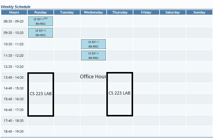 Office Hours: Please check the schedule of the ınstructor or TA for office times, or call or email in advance for a rendezvous.